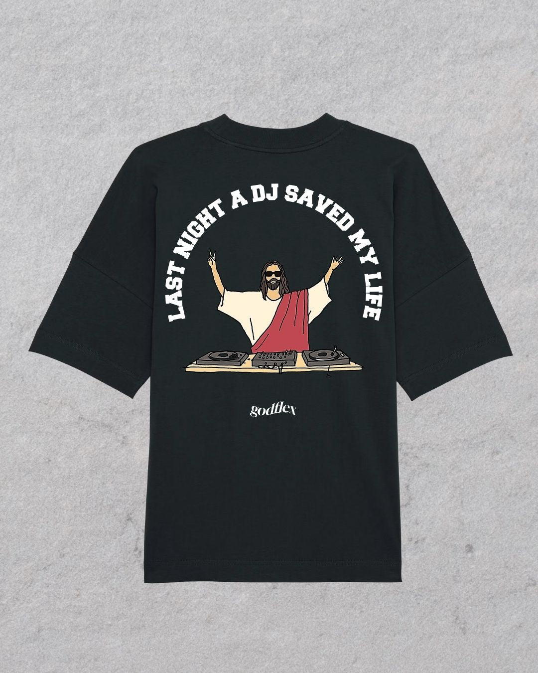 This collection was inspired by both the classic disco track "Last Night a DJ Saved My Life" by Indeep and the man himself, Jesus.